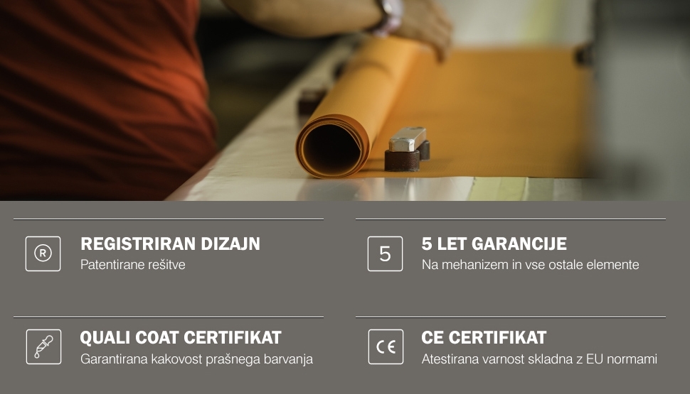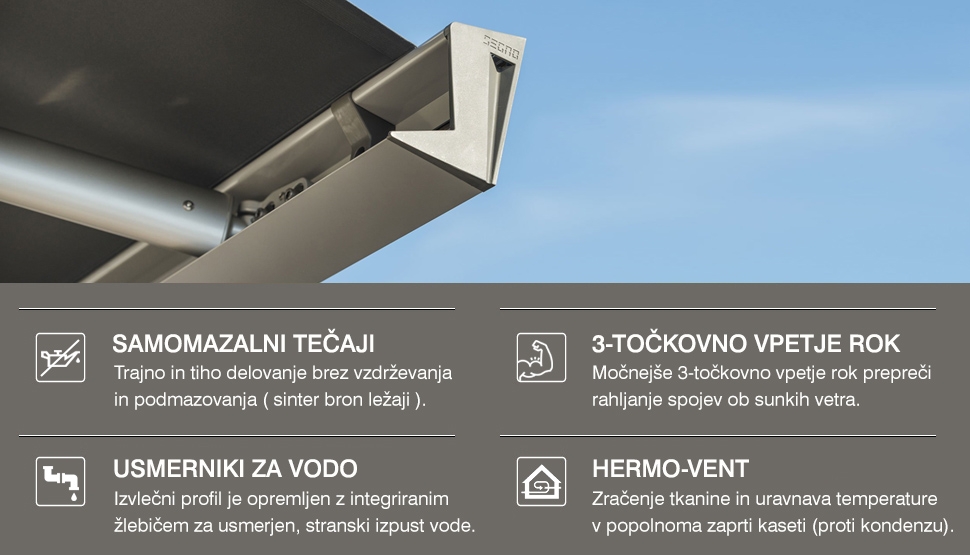 - Kaseta s HermoVent režami za zračenje tkanine in preprečevanje kondenza v kaseti.